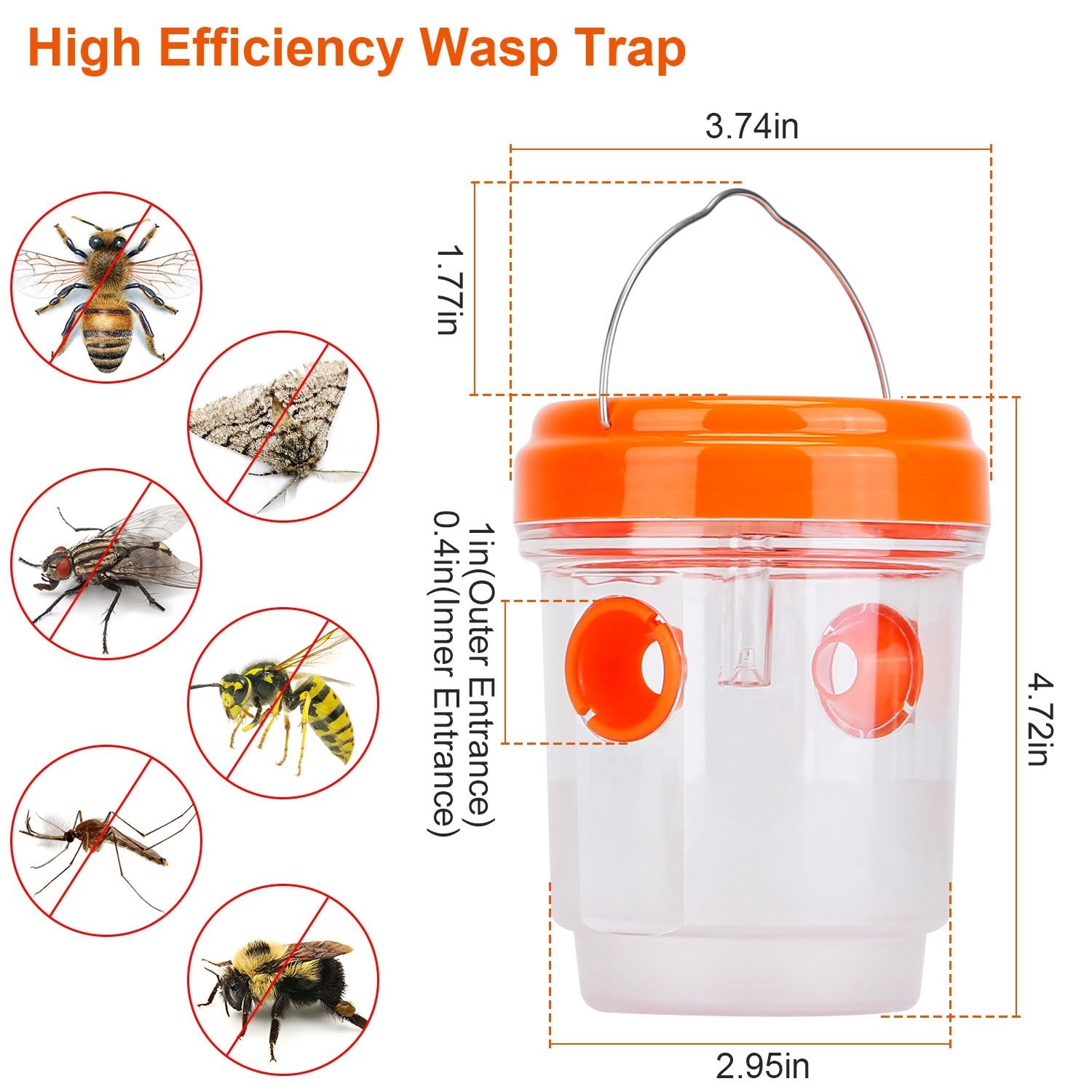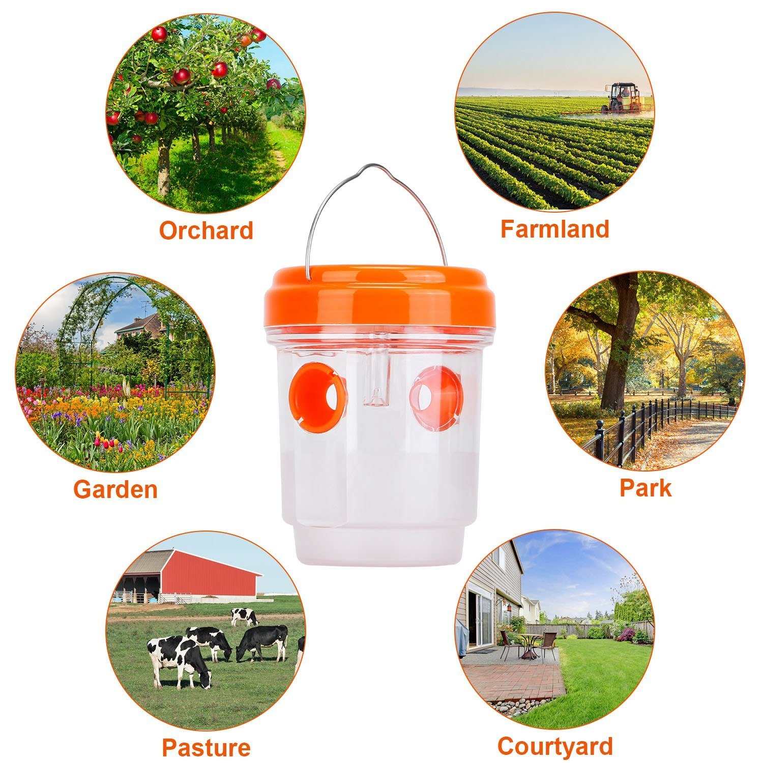 *Wide Application*:This wasp trap is widely used in garden; orchards; parks; balconies; courtyards; campsites; farms to trap wasps; bees; yellow jackets; hornet and more.