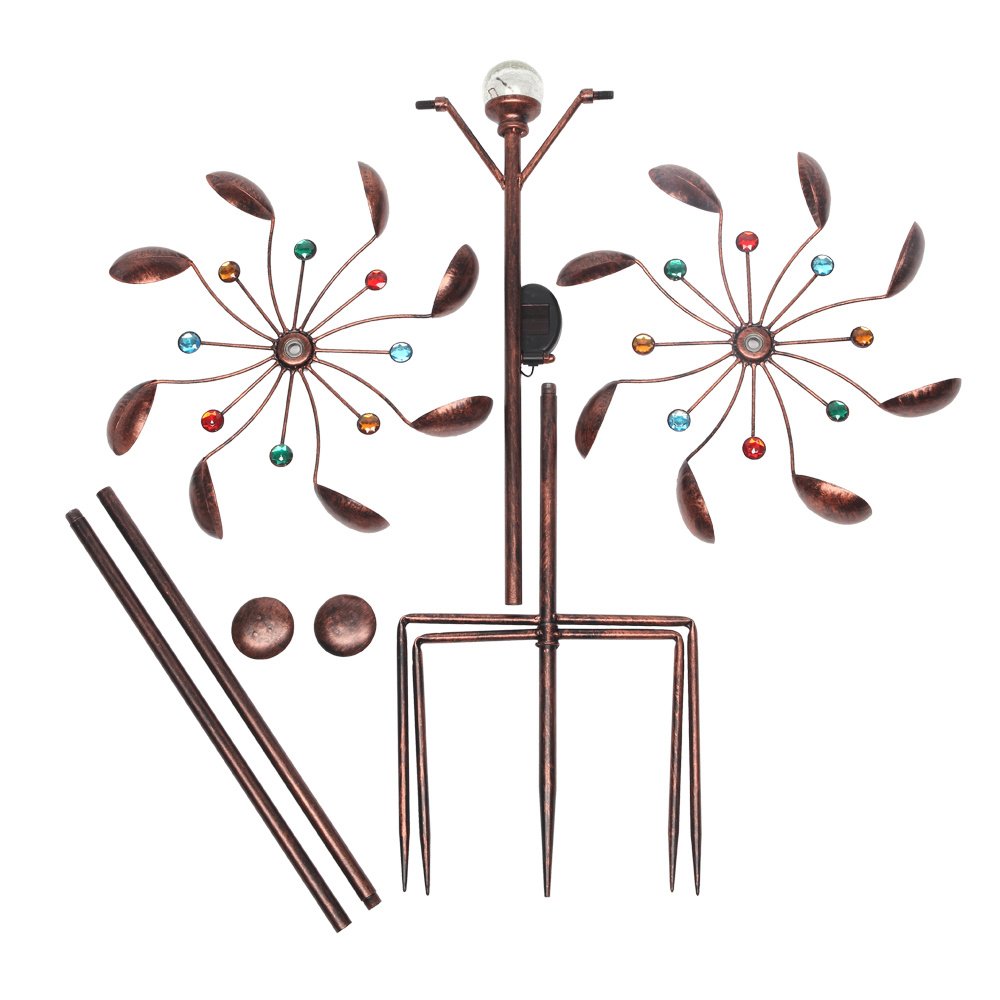 Solar Wind Spinner LED Lighting by Solar Powered Glass Ball with Kinetic Wind Aculptures Dual Direction Decorative Lawn Ornament Wind Mill